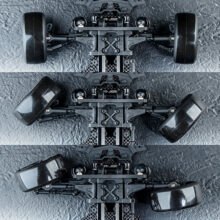 The new design THA adjustable short arms are used in the rear with long-type suspension arm mounts to increase rear roll and improve flipping speed and corner exit acceleration.