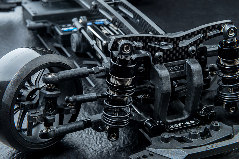 The newly designed ATK V2 Front steering block is used with a new Ackermann setting that provides aggressive and flexible steering at the beginning of the turn and can handle larger drifting angles in the later stages of the turn capable of stable driving during high-angle drifting.